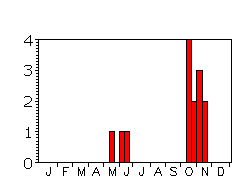 The first record was of a bird present in a ploughed field at Pleinmont on the very late (early?) date of 10-14 June 1973. There have been 8 records in total up to the end of 1998 and all but one record has come from either Pleinmont (4 records involving 4 birds) or the Chouet/Ladies Bay area (3 records involving 5 birds.) The only other record comes from Pulias. Shore Larks are autumn migrants and all but two records are from October and November. Apart from the June records there is only one other spring record of a bird seen at Pleinmont on 15 May 1994. |